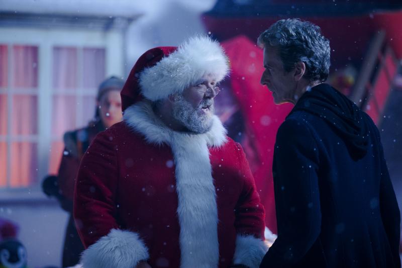 Santa Claus (NICK FROST), Doctor Who (PETER CAPALDI) (Credit: BBC / Adrian Rogers)