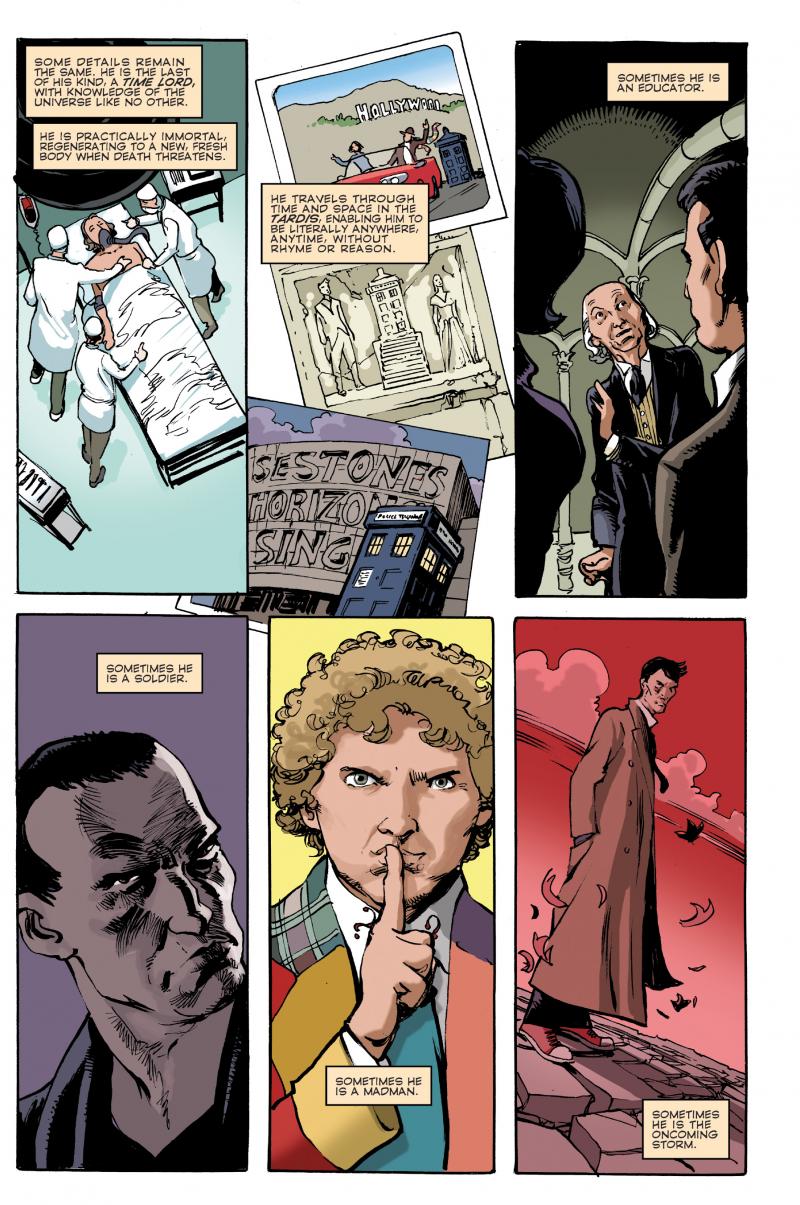 Celebrate the 50th Anniversary of Doctor Who anew with an epic adventure featuring the Doctor's first eleven incarnations! Writers Scott & David Tipton are joined by some of the greatest artists of the Doctor's comic book past and present to tell a story that shakes the Doctor to his core!
