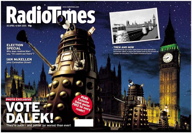 In addition, visitors can become cover stars themselves, posing alongside a life-size Dalek against a backdrop of Westminster Bridge to re-create the 2005 "Vote Dalek!" Radio Times cover, which promoted the episode Dalek and was voted most iconic cover of all time in the Great Cover Debate run by the Periodical Publishers Association (now called the Professional Publishers Association) in 2008. That particular cover is also currently in the running to be named Cover of the Century, with public voting open until Monday 30th September via the PPA website.