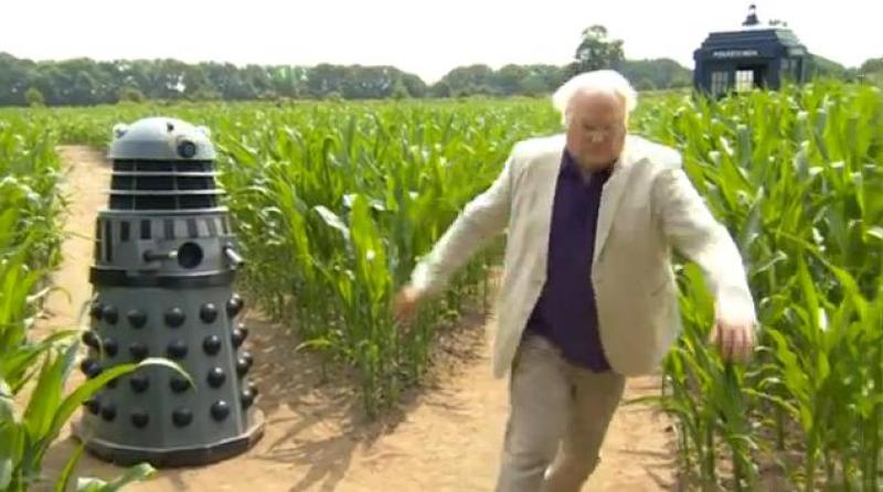 The annual Maize Maze from YorkMazes Ltd has been unveiled this weekend, with sixth Doctor Colin Baker on hand to open the special Doctor Who-themed maze, which this year celebrates the 50th Anniversary of the series. The maze, shaped in the form of a Dalek and featuring the likenesses of William Hartnell and Matt Smith is over 1,000 feet long, and contains some 6 miles of pathways.