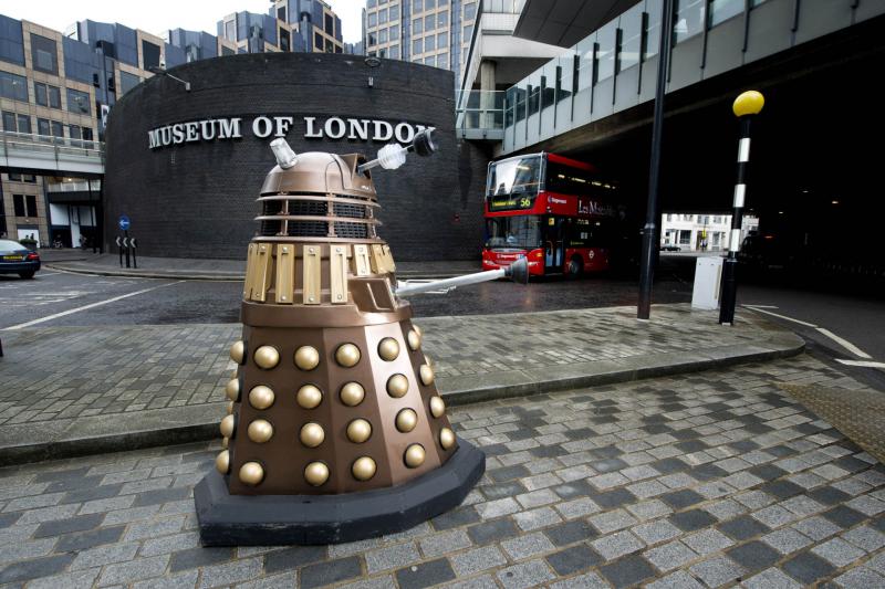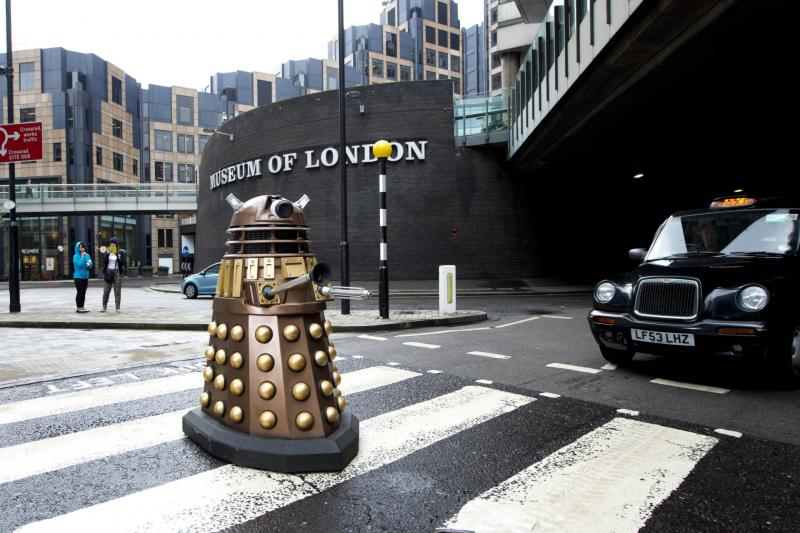 The exhibition is free to go round and is open every day until Sunday 3rd November. The museum is open from 10am to 6pm, with galleries starting to close at 5.40pm.A taxi halts the Dalek in its tracks en route to the Radio Times exhibition at the Museum of London. Picture: Matt Crossick/PA