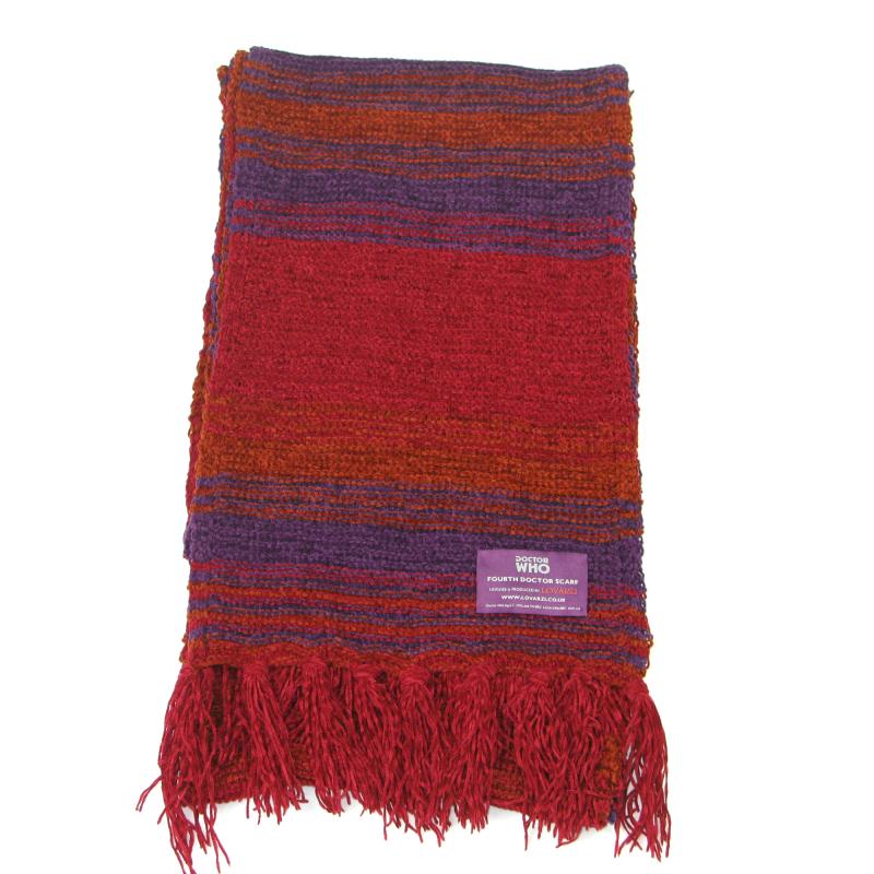 Tom Baker's Fourth Doctor swapped his brightly-coloured scarf in his final set of stories. Lovarzi's Season 18 Fourth Doctor Scarf in burgundy is made from acrylic chenille. It was first seen in The Leisure Hive (1980) and was designed by June Hudson under instructions from producer John Nathan-Turner. The scarf was used extensively until the Fourth Doctor's swansong serial, Logopolis, and was used in publicity shots for the 20th anniversary special, The Five Doctors, before retiring to Blackpool's Doctor Who exhibition, which operated from 1974 to 1985, and 2004 to 2009.