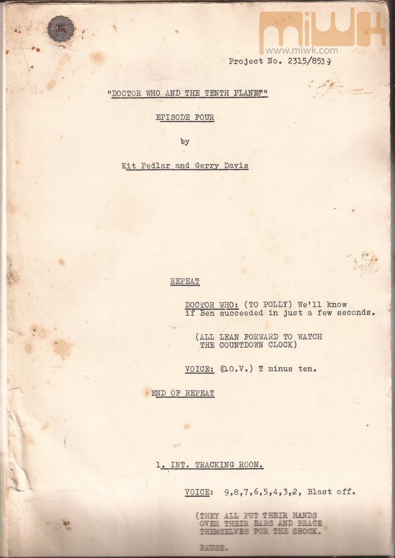 The relevance of this early draft, and the date it was prepared goes some way to illustrating the hasty nature of Hartnell’s departure: As I looked through it, I realised it was the first draft Gerry Davis prepared when Kit fell ill in June 1966.