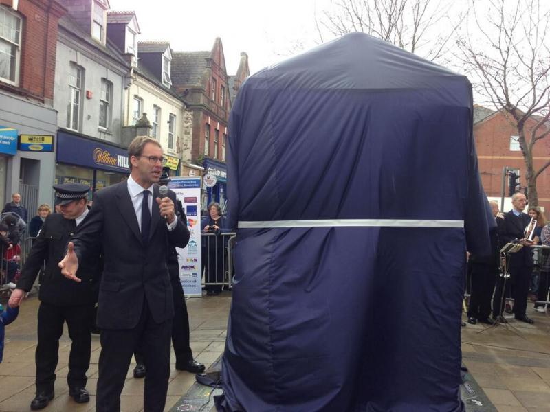 Dorset Police Band entertained onlookers beforehand and then it was time for Bournemouth East MP Tobias Ellwood to deliver a speech before unveiling the steel-framed construction, which is based on the iconic 1929 design created by Gilbert Mackenzie Trench for the Metropolitan Police and subsequently used in Doctor Who.
