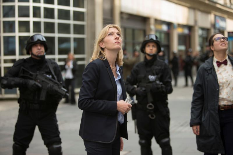 Death in Heaven, the Doctor (Peter Capaldi), Kate Stewart (Jemma Redgrave), and Osgood (Ingrid Oliver) (Credit: Adrian Rogers, ©BBC/BBC WORLDWIDE 2014)