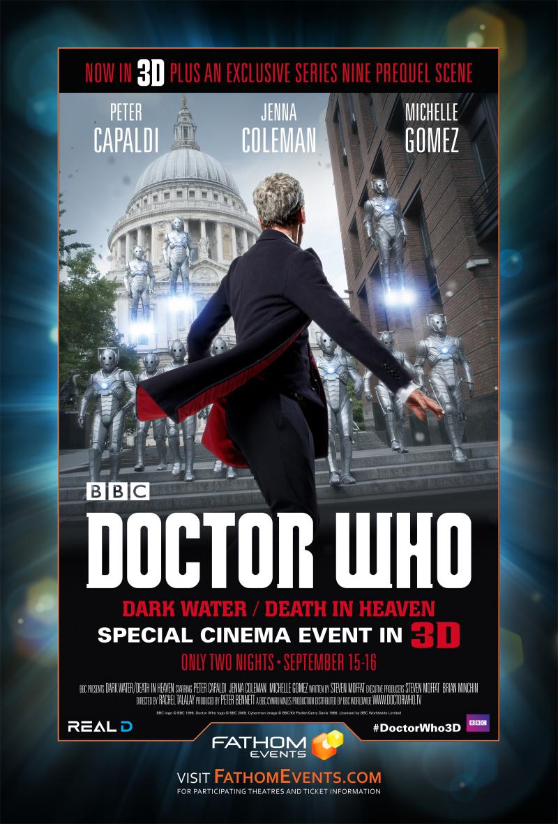 Doctor Who: Dark Water/Death in Heaven, will be presented in RealD™ 3D and Dolby Atmos sound (where available) on September 15 and 16 at 7:30 p.m. (local time), just before the launch of Series Nine on BBC America the following Saturday.
