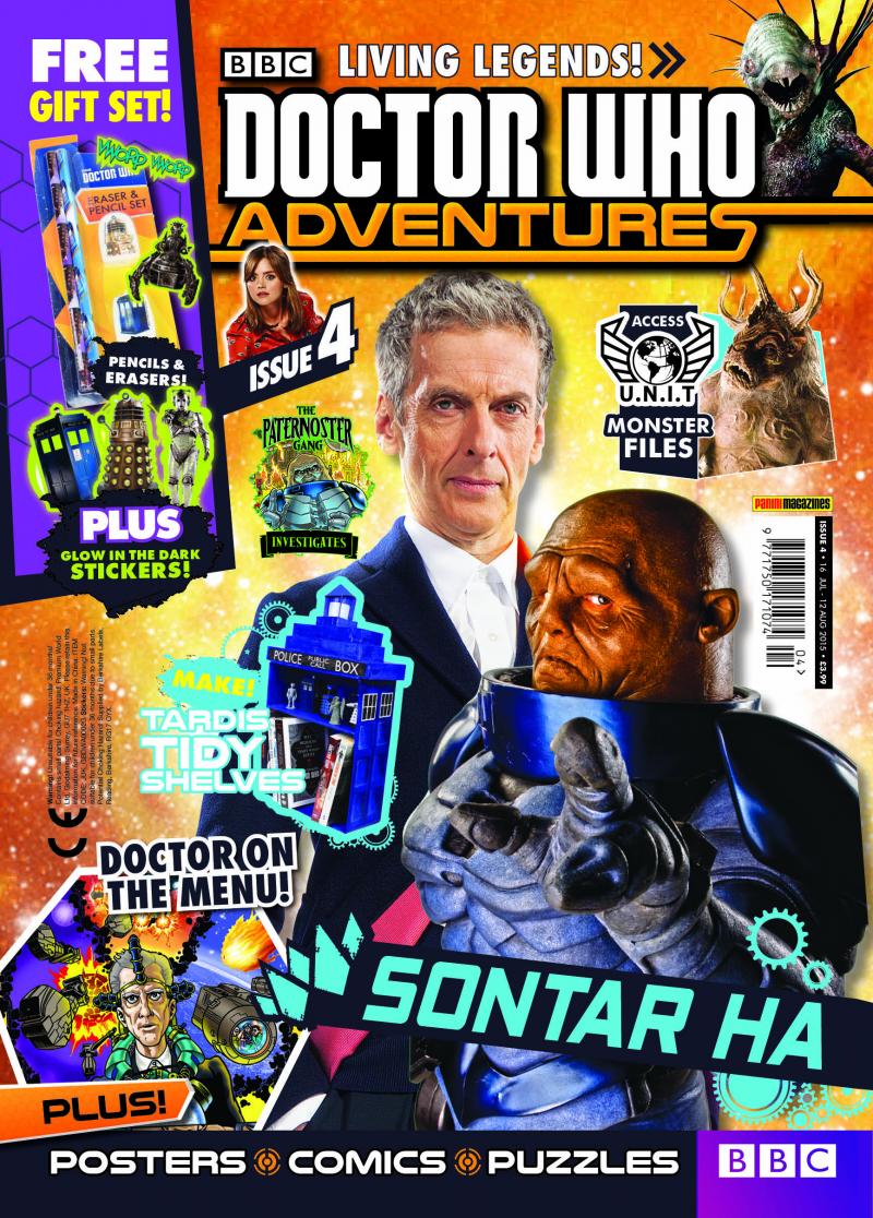 Doctor Who Adventures #4 contains features, posters, games and puzzle activities. Issue 4 comes with a Free Doctor Who Stationery Set and a collection of glow in the dark stickers. On sale 16th July 2015, price £3.99