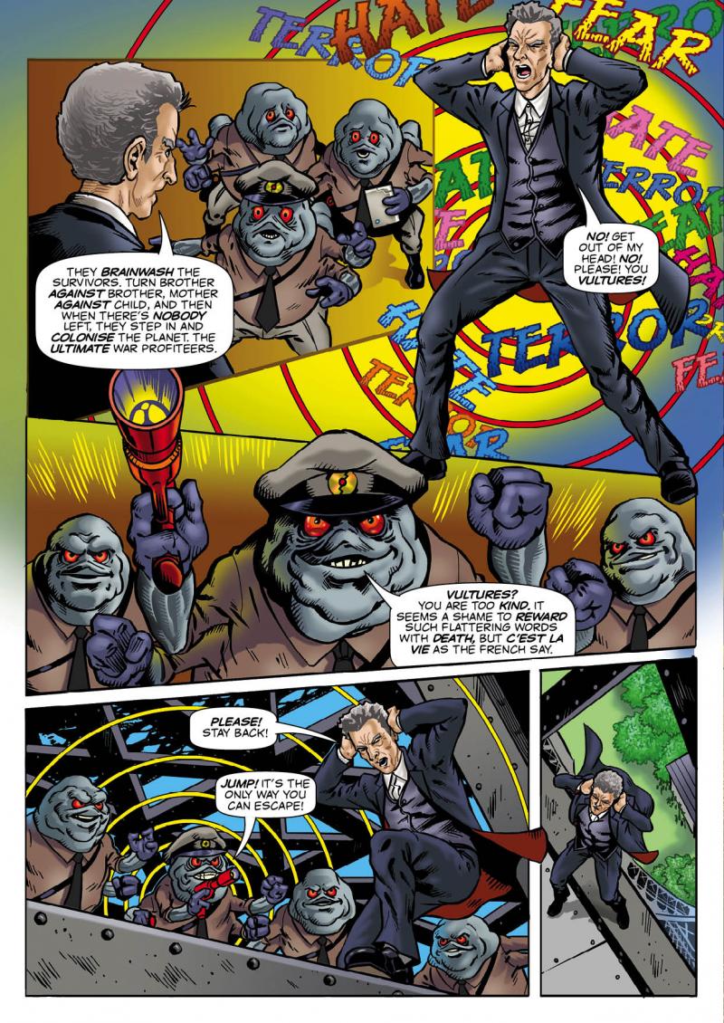 The Doctor takes Clara back to the liberation of Paris in World War Two for the biggest party the party capital of the world has ever seen, but things soon go awry when the deadly Darapok Empire try to take over the war weary city. Take a summer trip to Paris in 1944 in TRUST written by Jason Quinn, illustrated by Russ Leach and coloured by John Burns, it’s going to be a party you will never forget! - THE FEAR FACTOR