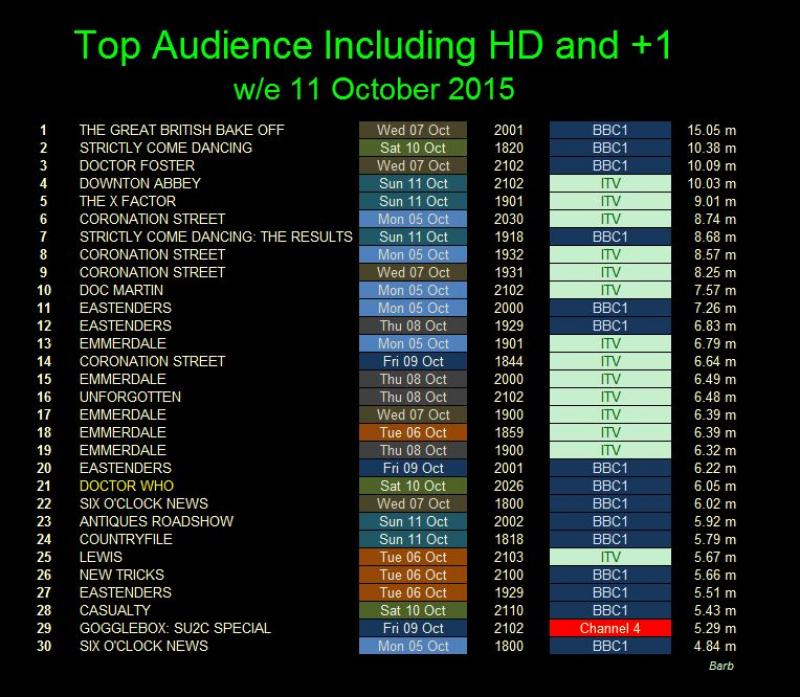 The rating issued by the Broadcasters' Audience Research Board, or BARB, includes all those who watched the programme within one week of transmission. It does not include those watching online via iPlayer