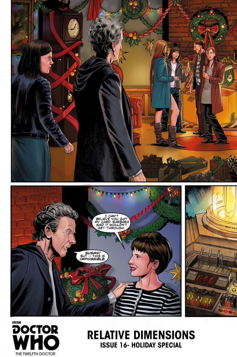 It's the 2015 Doctor Who Holiday Special! When a mysterious Christmas card materializes on the TARDIS console, Clara and the Doctor are pulled into an interdimensional adventure of astoundingly festive proportions! Packed with impossible sights and nigh-insurmountable stakes, this special issue also contains puzzles and games woven into the story!