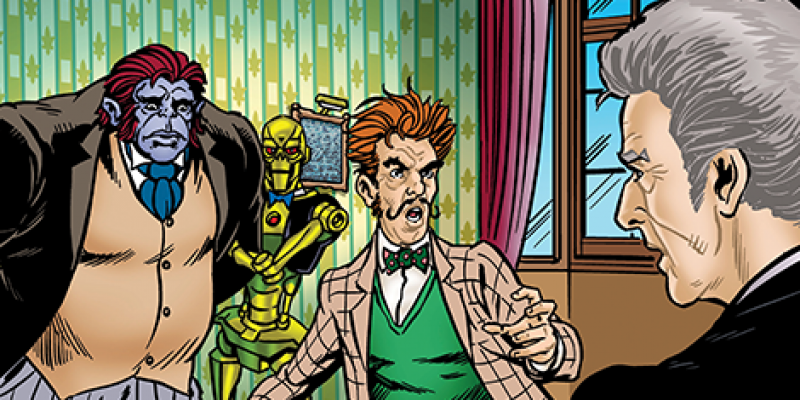 - SKY MANOR The Doctor ends up playing detective in a country house high up in the clouds. The trouble is, he’s being chased by an angry group of gorillas and the country house is about to come crashing out of the sky and down to earth! You’ll go ape with this latest offering from Kieron Moore, Russ Leach and John Burns!