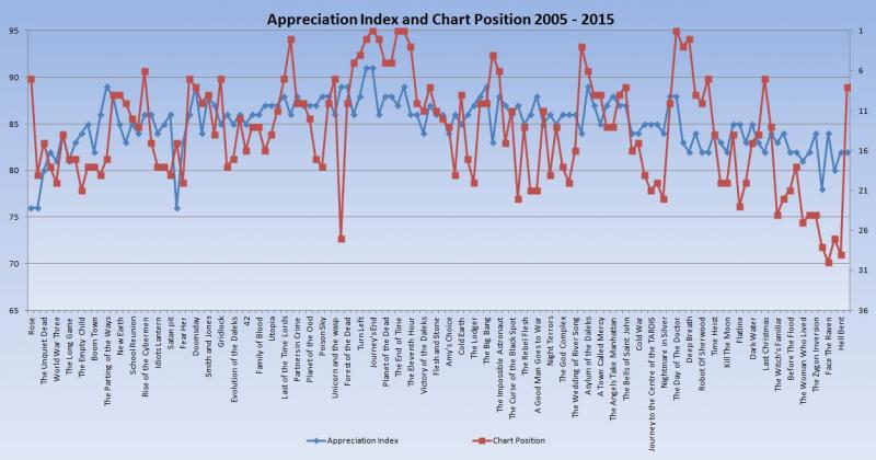 The overall chart position for each week ranged from 13th for The Magician's Apprentice down to 30th for Sleep, the lowest chart position since the series returned in 2005. The lowest chart position in the series history was 170th for the second episode of Full Circle in 1980. The only episode this year to make the top ten was the Christmas Special, The Husbands of River Song, which came in 8th.