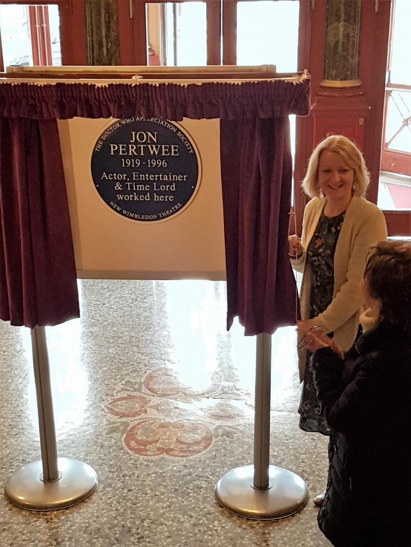 The unveiling took place on Sunday at the New Wimbledon Theatre in South London. Pertwee was the the first Honorary President of the Society and the event was hosted by the current Honorary President, Sixth Doctor Colin Baker, who welcomed guests to the theatre.