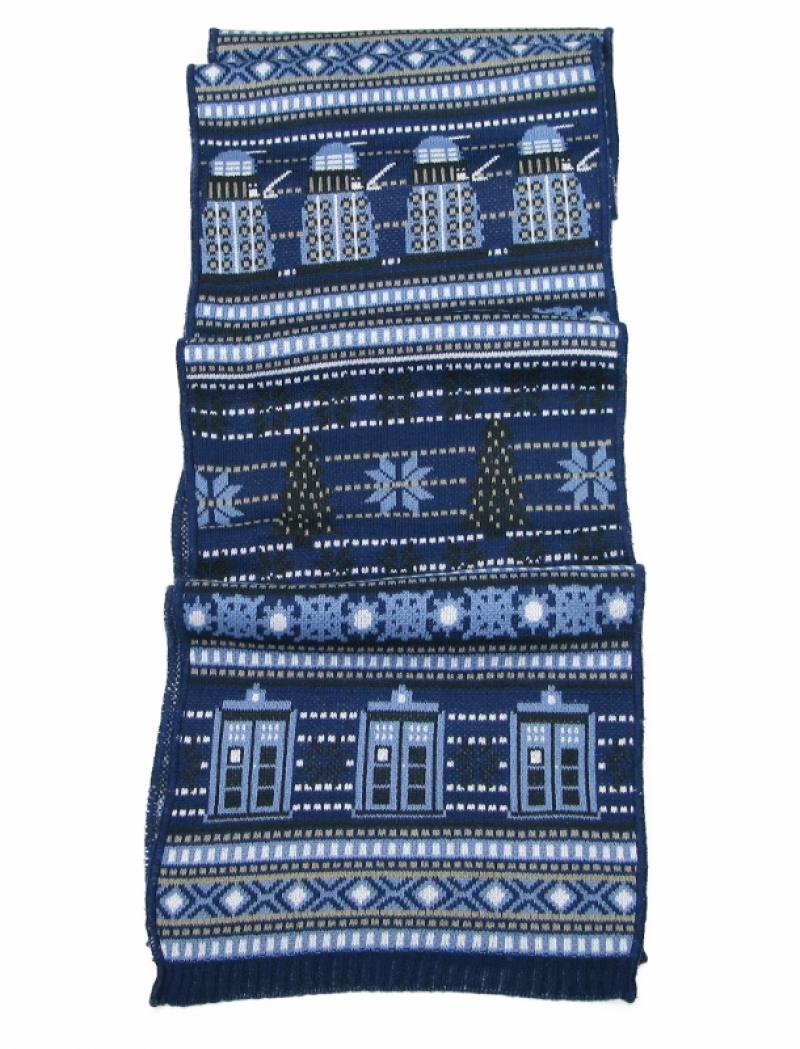 To celebrate the return of Doctor Who on Christmas Day, Lovarzi is releasing a TARDIS and Daleks Christmas Scarf, and a knitted Hat with the same exclusive pattern. Both scarf and hat are made from 100% premium quality Acrylic.