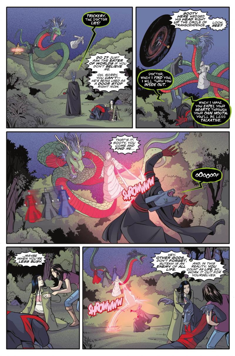 The grand finale of Year Two! The impossible has occurred, and an ancient foe, long since defeated, has returned again to plague the Doctor, the universe, and to threaten all of reality! Has Anubis fallen to the ways of his father, Sutekh... or has Sutekh found a way to transcend death? Whoever survives will head into Year Three forever changed!
