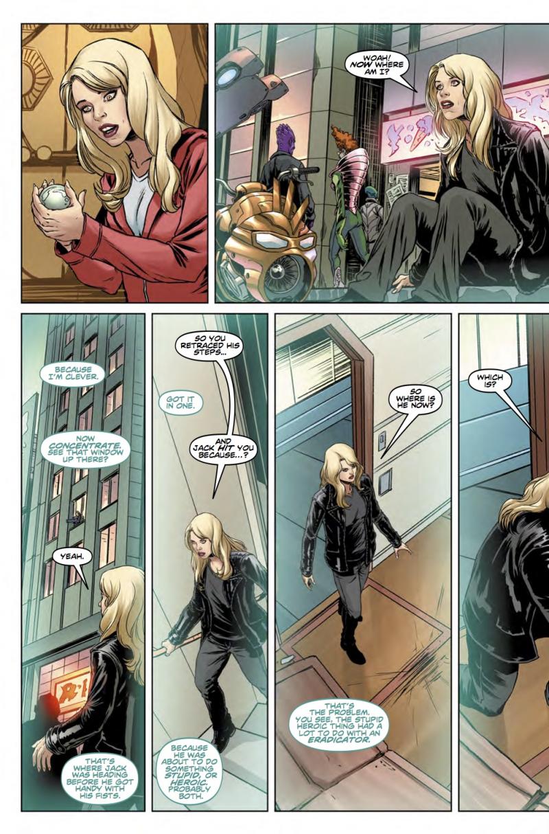 With some knowledge of his past life apparently restored, Jack is determined to put right his misdeeds as a Time Agent – in particular, stopping his past self from erasing the criminal Zloy Volk from the timeline, using an Eradicator gun. But... Zloy Volk is very much alive. How?! Even worse, in the process of stopping his past self from erasing Volk all over again, JACK was seemingly erased! The Doctor, Rose, and Tara are on the scene...