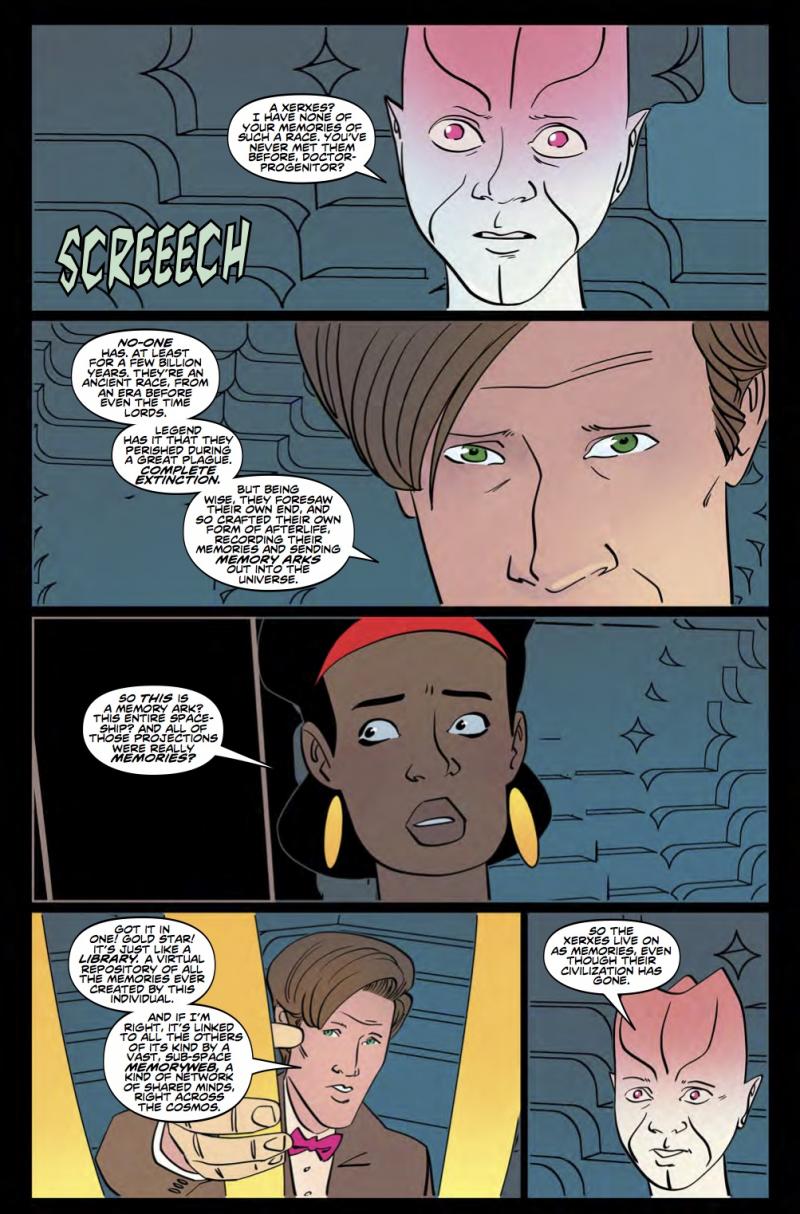 Once inside, they found enormous microclimates filled with everything from pterodactyls to burning suns! Of course, the wonder did not last as they were chased by memory parasites – the Thrakes – and the world inside the ship began to disintegrate, just as they came face to face with a mysterious coffin...
