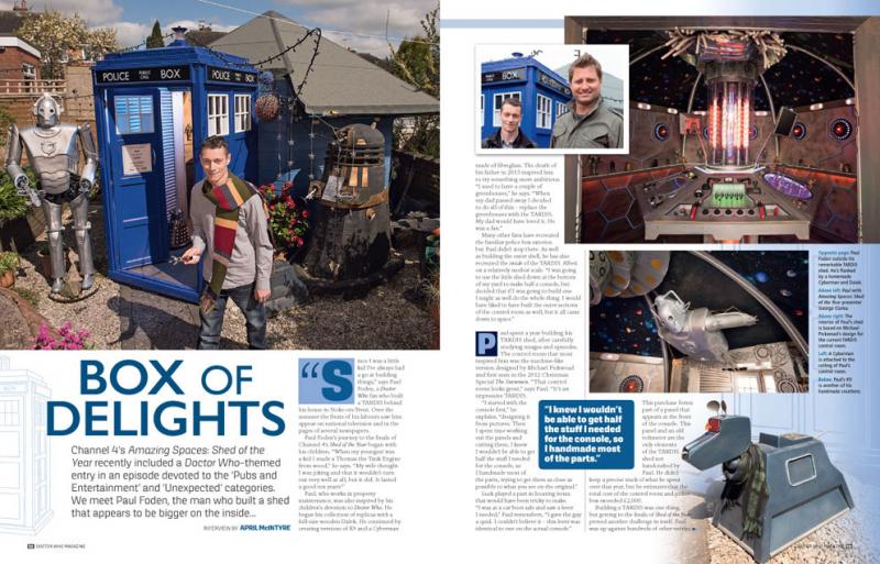 - BOX OF DELIGHTS An interview with Paul Foden, the fan whose home-made TARDIS recently appeared on Channel 4’s Amazing Spaces: Shed of the Year.