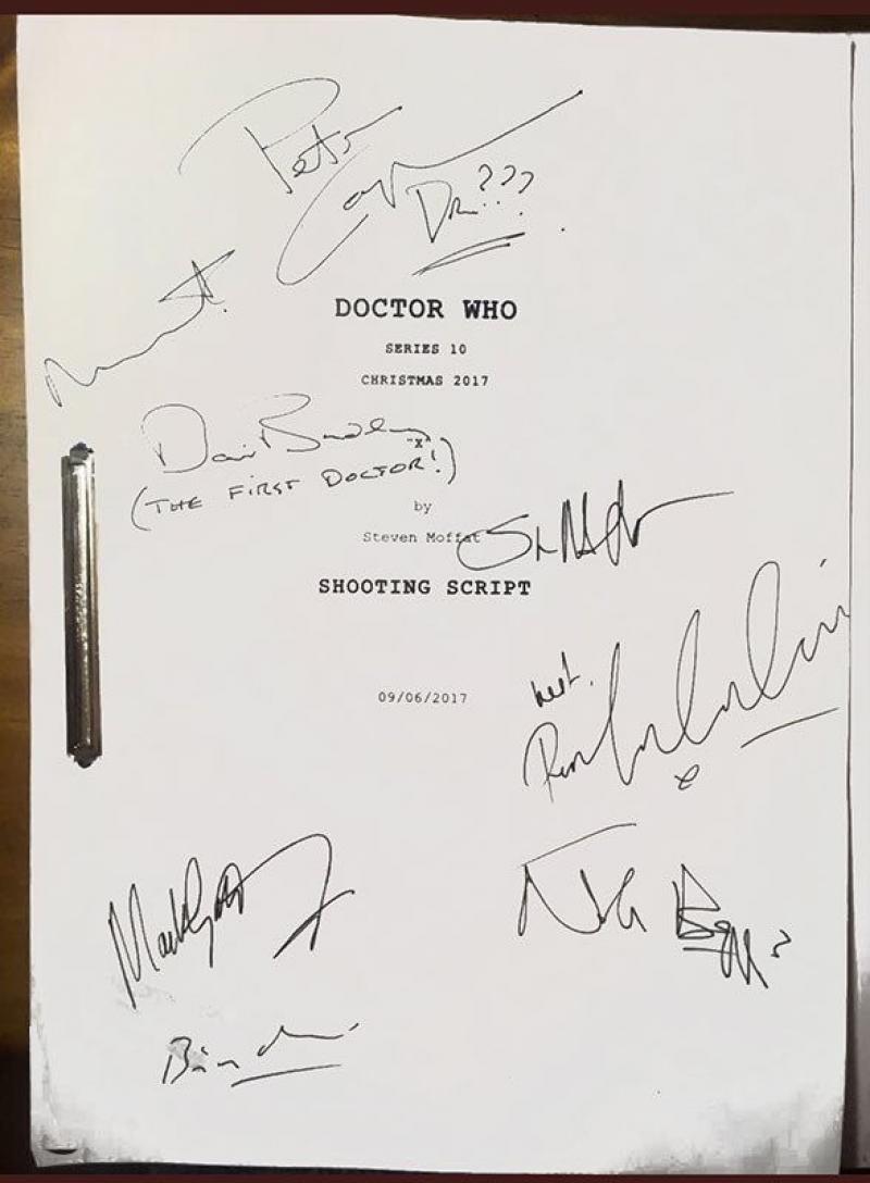 The script is signed by the two Doctor's in the story, Peter Capaldi and David Bradley, as well as other members of the team, and has been donated by Mark Gatiss, who is playing The Captain in the story.